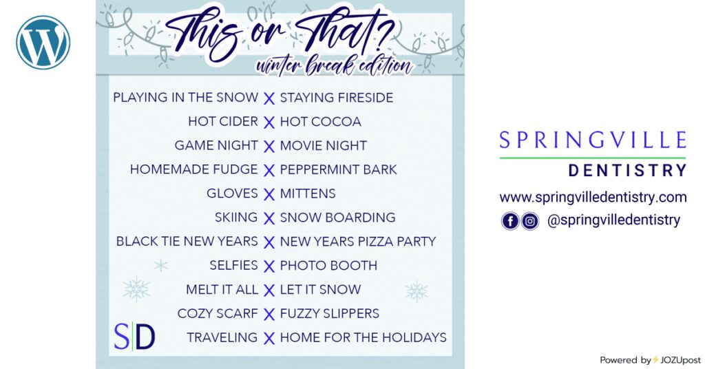 This or That? Winter Edition... Have you ever really thought about what you prefer? What makes you smile, what makes you laugh, and what brings you joy? We are all very different as individuals and our differences are what make the world go 'round. Happy Holidays! #beyou #happinesss CLICK ON EACH ICON TO SEE THIS POSTON EACH SOCIAL MEDIA PLATFORM Powered by⚡JOZUpost