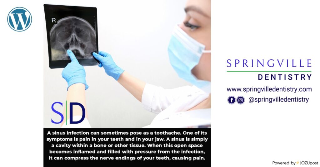 A sinus infection can sometimes pose as a toothache. One of its symptoms is pain in your teeth. A sinus is simply a cavity inside a bone and other tissue. When this open space becomes inflamed or filled, causing pressure from the infection it can compress the nerve endings of your teeth, which can be very painful. #sinuspressure #toothache CLICK ON EACH ICON TO SEE THIS POSTON EACH SOCIAL MEDIA PLATFORM Powered by⚡JOZUpost