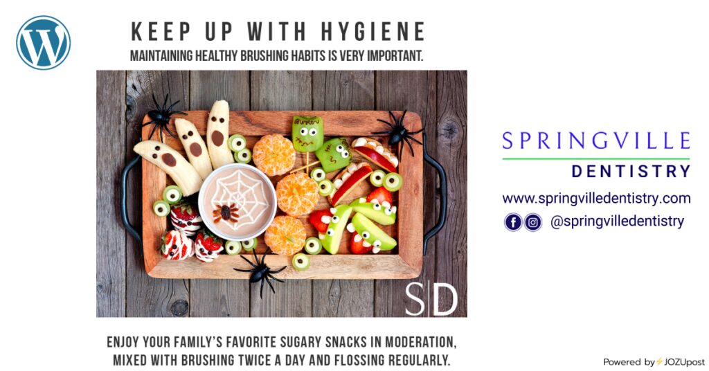 ???????? Keep Up With Hygiene This Halloween! ???????? Maintaining healthy brushing habits is very important. Enjoy your family’s favorite sugary snacks in moderation, mixed with brushing twice a day and flossing regularly. • • #halloween???????? #dentalhygiene CLICK ON EACH ICON TO SEE THIS POSTON EACH SOCIAL MEDIA PLATFORM Powered by⚡JOZUpost