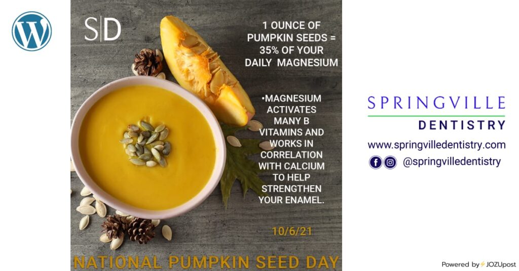 National Pumpkin Seed Day | Wed., October 6, 2021: •Among other civilizations, the Aztecs and Mayans were believed to revere pumpkin seeds as an essential and powerful source of food and nutrition. As it turns out they were on to something – In comparison to other nuts and seeds, Pumpkin Seeds are one of the most nutritious plant-based foods. A quarter-cup serving alone includes an immune-boosting 17% of an adult’s daily allowance of zinc and a robust red blood cell-supporting 15% of the iron