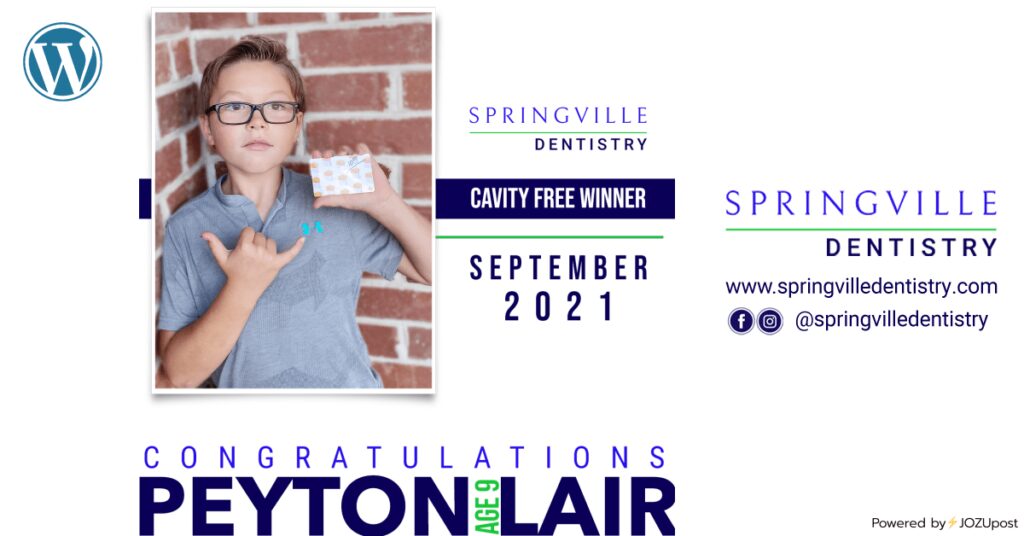Look at this AMAZING KID! ???????????????? CONGRATULATIONS PEYTON LAIR (age 9)!! We are very proud of PEYTON. He is our Cavity Free Kids Club Winner for September 2021. ????Keep up the great work, Peyton! #cavityfreekids #brushyourteeth CLICK ON EACH ICON TO SEE THIS POSTON EACH SOCIAL MEDIA PLATFORM Powered by⚡JOZUpost