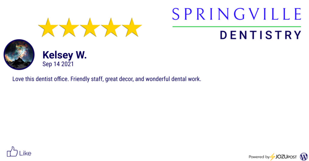 We appreciate our patients! Here is our latest Five-Star Review from Kelsey W. We love to recognize those patients that take the time to fill out a review and let us know how we are doing. Here is what Kelsey W. had to say: "Love this dentist office. Friendly staff, great decor, and wonderful dental work." Thank you, Kelsey W.! We look forward to seeing you again at your next dental appointment! We at Springville Dentistry try to respond to all the customer feedback we receive, including