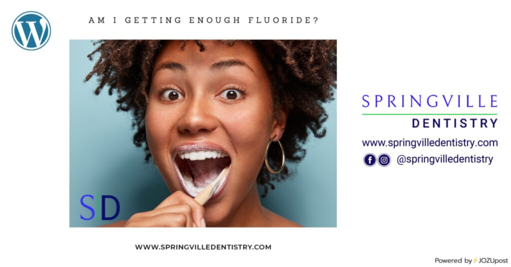 Am I Getting Enough Fluoride? Generally, if you stick to a healthy at-home dental routine using fluoride toothpaste, eat a nutritious diet, and drink fluoridated water, then you’re getting enough fluoride. Really, the best way to know if you could benefit from more fluoride is to ask! Your Springville Dentistry Dentist!We will be able to examine your teeth and provide a recommendation. If you’d like to know more about fluoride treatment, contact the team at Springville Dentistry. We’re happy