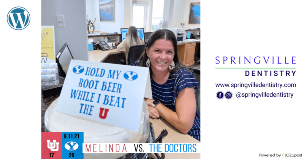the dentists at Springville dentistry bet on the BYU cougars to beat the utes… and they won.