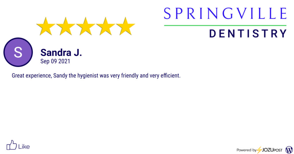 Springville Dentistry receives five-star review from Sandra J.