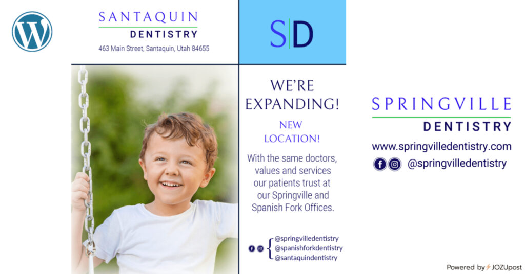 WE ARE EXPANDING... and we are excited! In continuing with the theme of Springville Dentistry, and Spanish Fork Dentistry our new office in Santquin will be called "Santaquin Dentistry." It will be located at, 463 Main Street, Santaquin, Utah 84655 More details to come! • • • • • #santaquindentistry #dentistsantaquinutah CLICK ON EACH ICON TO SEE THIS POST ON EACH SOCIAL MEDIA PLATFORM Powered by⚡JOZUpost