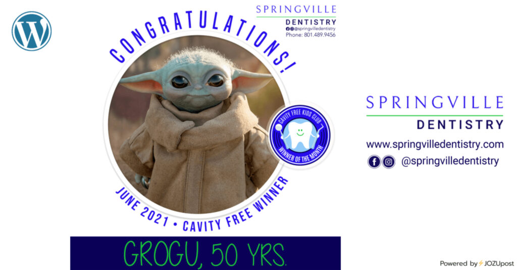 Congratulations to Grogu, our June 2021 Cavity-Free Kids Club Winner. Even though he is only an infant and needs a lot of help from his protectors, Grogu had a perfect checkup! 900 years is a long time to live, so it is important for him to keep his teeth well taken care of! Have you checked out Yoda's teeth? They are not pretty, but at least he still has them! • • • • • • #grogu #mandalorian CLICK ON EACH ICON TO SEE THIS POST ON EACH SOCIAL MEDIA PLATFORM Powered by⚡JOZUpost