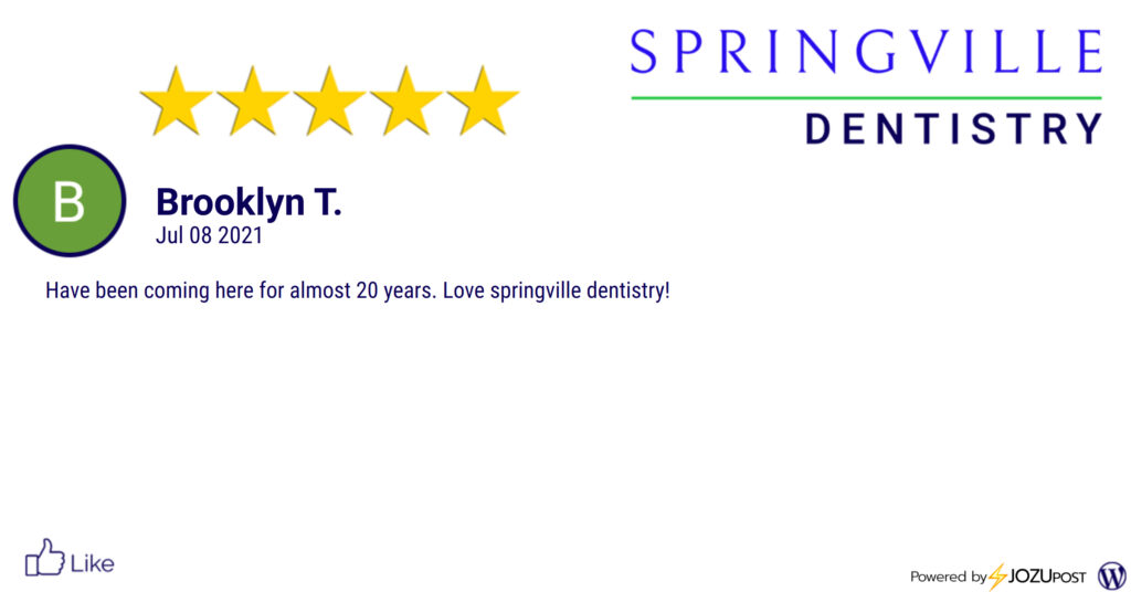 We appreciate our patients! Here is our latest Five-Star Review from Brooklyn T. We love to recognize those patients that take the time to fill out a review and let us know how we are doing. Here is what Brooklyn T. had to say: "Have been coming here for almost 20 years. Love springville dentistry!" Thank you, Brooklyn T.! We look forward to seeing you again at your next dental appointment! We at Springville Dentistry try to respond to all the customer feedback we receive, including