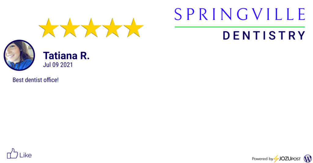 We appreciate our patients! Here is our latest Five-Star Review from Tatiana R. We love to recognize those patients that take the time to fill out a review and let us know how we are doing. Here is what Tatiana R. had to say: "Best dentist office!" Thank you, Tatiana R.! We look forward to seeing you again at your next dental appointment! We at Springville Dentistry try to respond to all the customer feedback we receive, including Five-Star Reviews. That is how we have become the leading