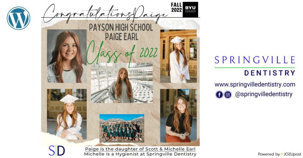 Paige Earl! is graduating from Payson high school this upcoming week. She is Michelle (hygienist) and Scott Earl’s daughter. Paige is planning on going to BYU-I in the fall. CONGRATULATIONS Paige! We are so excited for you! We wish you all the best! ???????? ????@michelleearl72 @paige_vada #paysonhighschool #classof2022 CLICK ON EACH ICON TO SEE THIS POSTON EACH SOCIAL MEDIA PLATFORM Powered by⚡JOZUpost