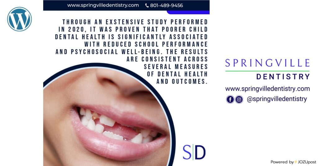 Through an exstensive study performed in 2020, it was proven that poorer child dental health is significantly associated with reduced school performance and psychosocial well-being. The results are consistent across several measures of dental health and outcomes. #childrencavity #overallhealth CLICK ON EACH ICON TO SEE THIS POSTON EACH SOCIAL MEDIA PLATFORM Powered by⚡JOZUpost