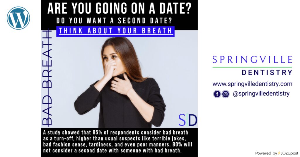Are you going on a date? Do you want a second date? Consider your breath: A study showed that 85% of respondents consider bad breath as a turn-off, higher than usual suspects like terrible jokes, bad fashion sense, tardiness, and even poor manners. The findings also show that 80% would not go on a second date with someone if they had bad breath on the first date. Oral Health Foundation (2019) ‘National Smile Month Survey’, Atomik Research.) #badbreath #halitosis CLICK ON EACH ICON TO