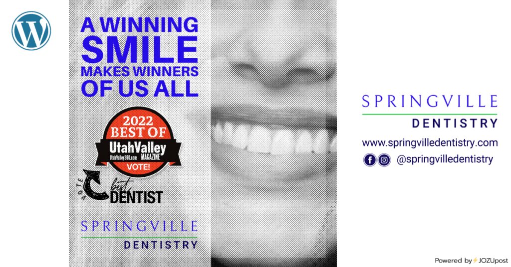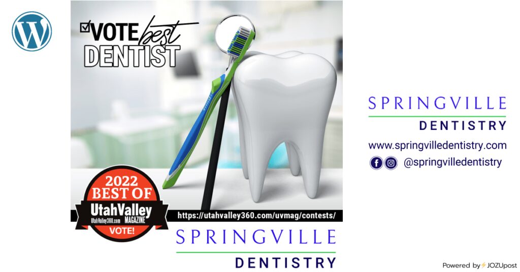 The time of the year has come again when we all get to vote for our favorite places in Utah County. It’s the Best of Utah Valley 2022 contest voting time. We would love your votes! Vote for Springville Dentistry for your favorite dentist! Thank you! Go to: https://utahvalley360.com/uvmag/contests/ #bestdentistutah #bestofutahvalleydentist CLICK ON EACH ICON TO SEE THIS POSTON EACH SOCIAL MEDIA PLATFORM Powered by⚡JOZUpost